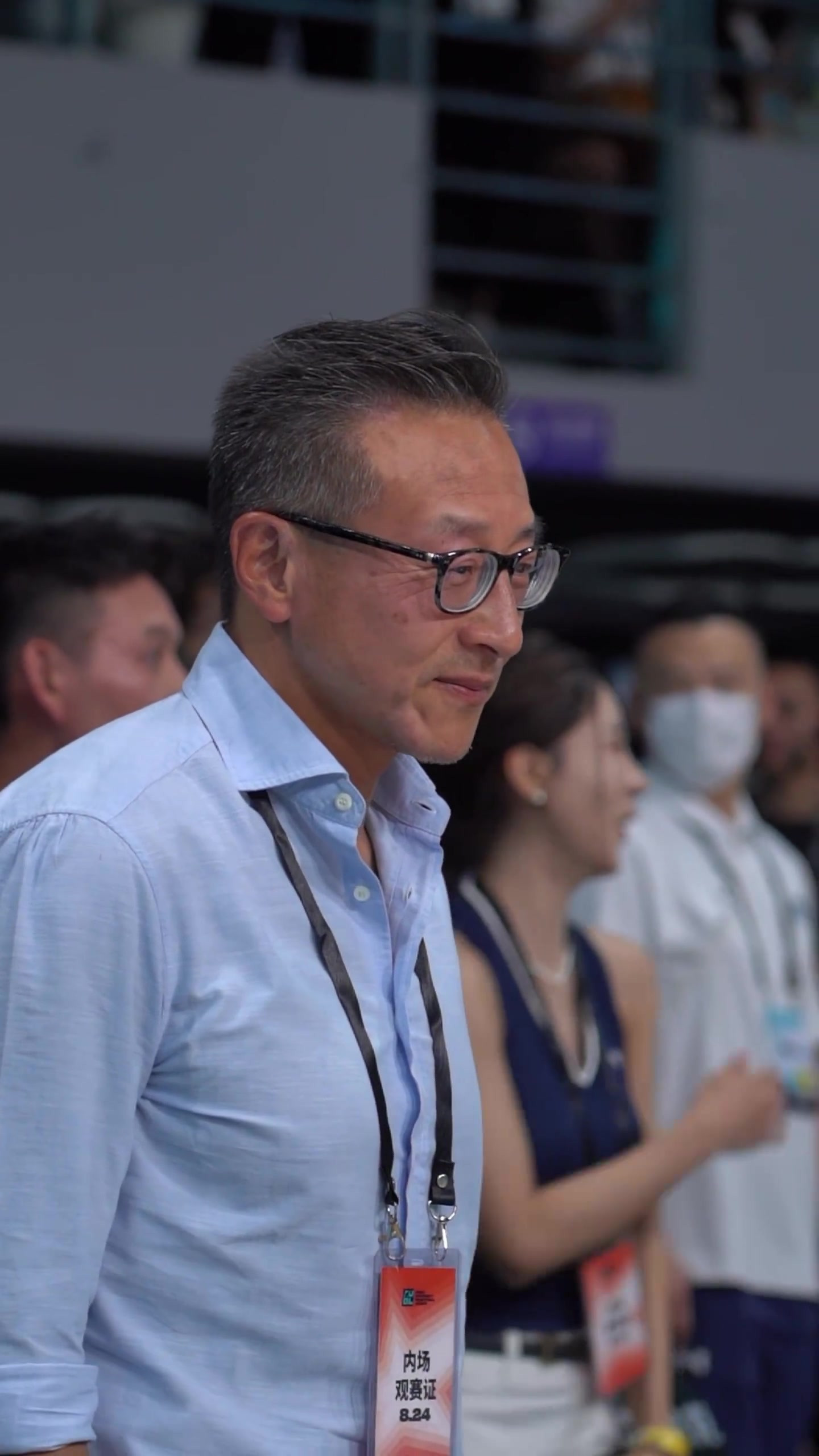 姚明和邓超在场边观战,NBA篮网老板蔡崇信和凯尔特人新晋老板何猷君也来到了现场。