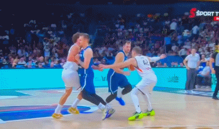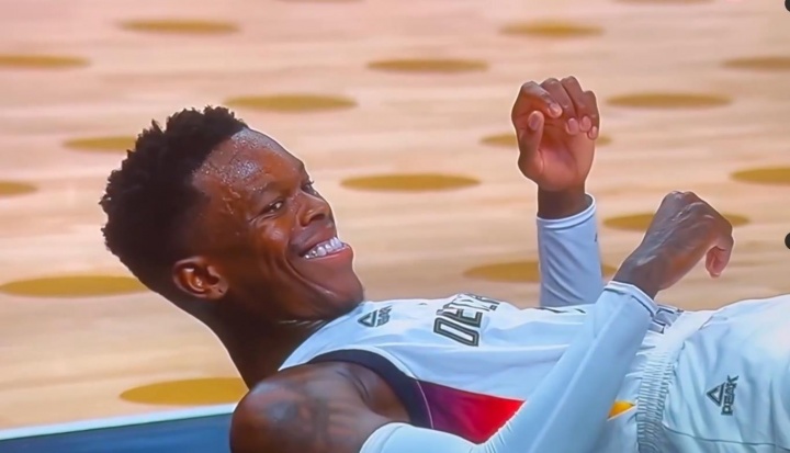 造到东契奇进攻犯规 施罗德躺在地上面露微笑