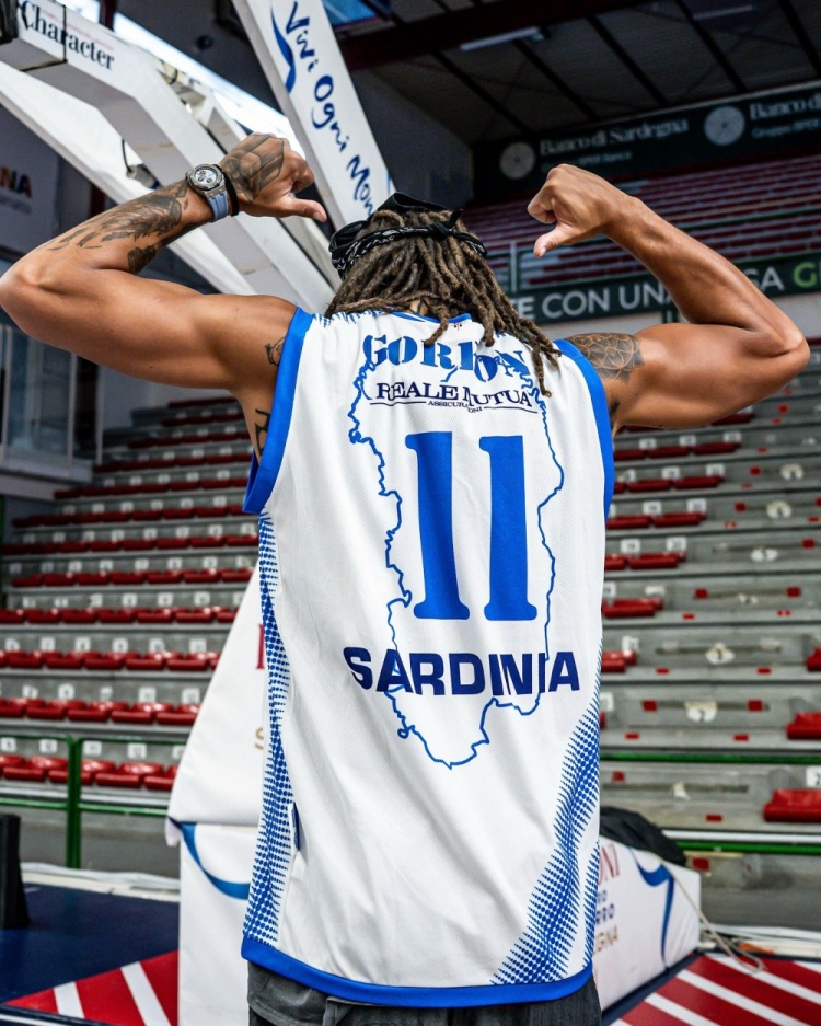9月19日讯 掘金球员阿隆-戈登在意大利萨萨里出席活动时,穿着其已故哥哥德鲁-戈登的球衣。