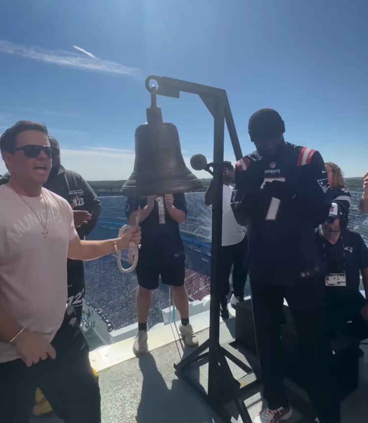 杰伦-布朗带队观看爱国者比赛 和影星沃尔伯格一起为球队敲钟开赛