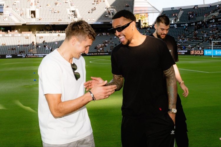 快船官方配文写到:“周日足球之夜,祖巴茨、博格丹-博格达诺维奇、科林斯一起现身观看今晚的洛杉矶FC比赛!”