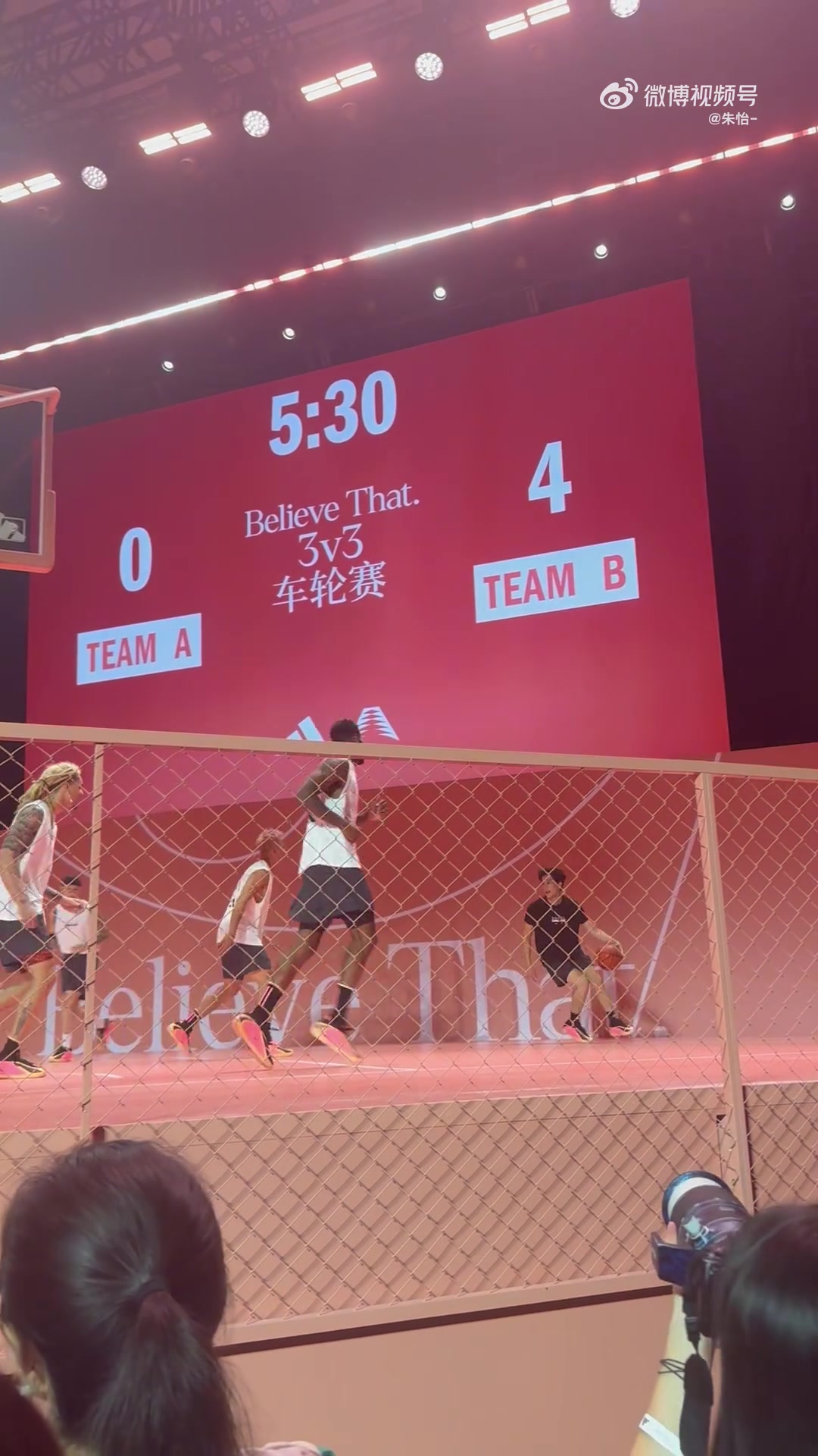 在活动中,王安宇在篮球对抗赛中表现抢眼,他成功抢断篮板并完成一条龙上篮,甚至还完成了扣篮。