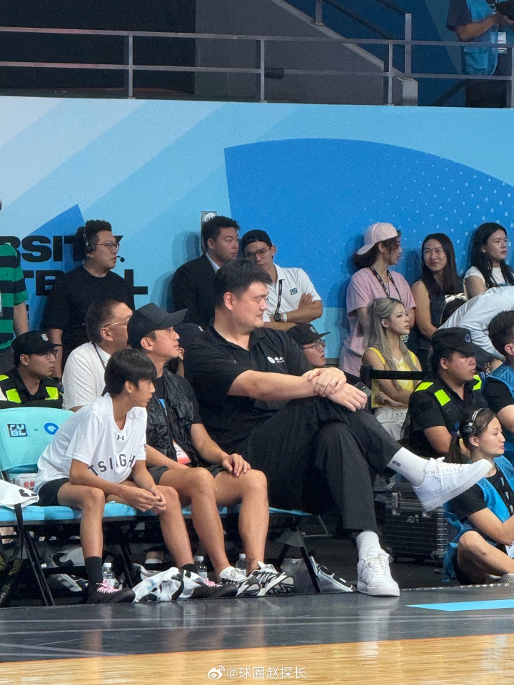 姚明和邓超在场边观战,NBA篮网老板蔡崇信和凯尔特人新晋老板何猷君也来到了现场。