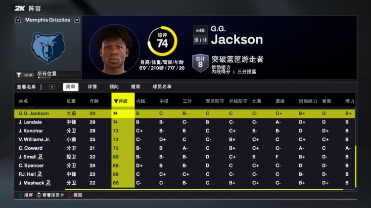 今日NBA 2K26正式发布,灰熊队球员能力值如下: