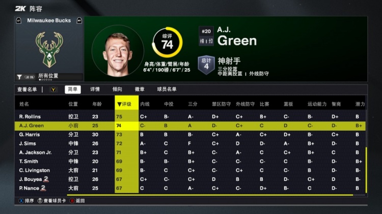 8月30日讯 今日NBA2K26正式发布,雄鹿队球员能力值如下: