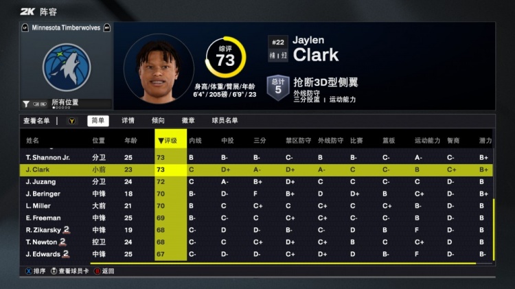 2K26森林狼能力值:爱德华兹95 戈贝尔84 全队5人80...