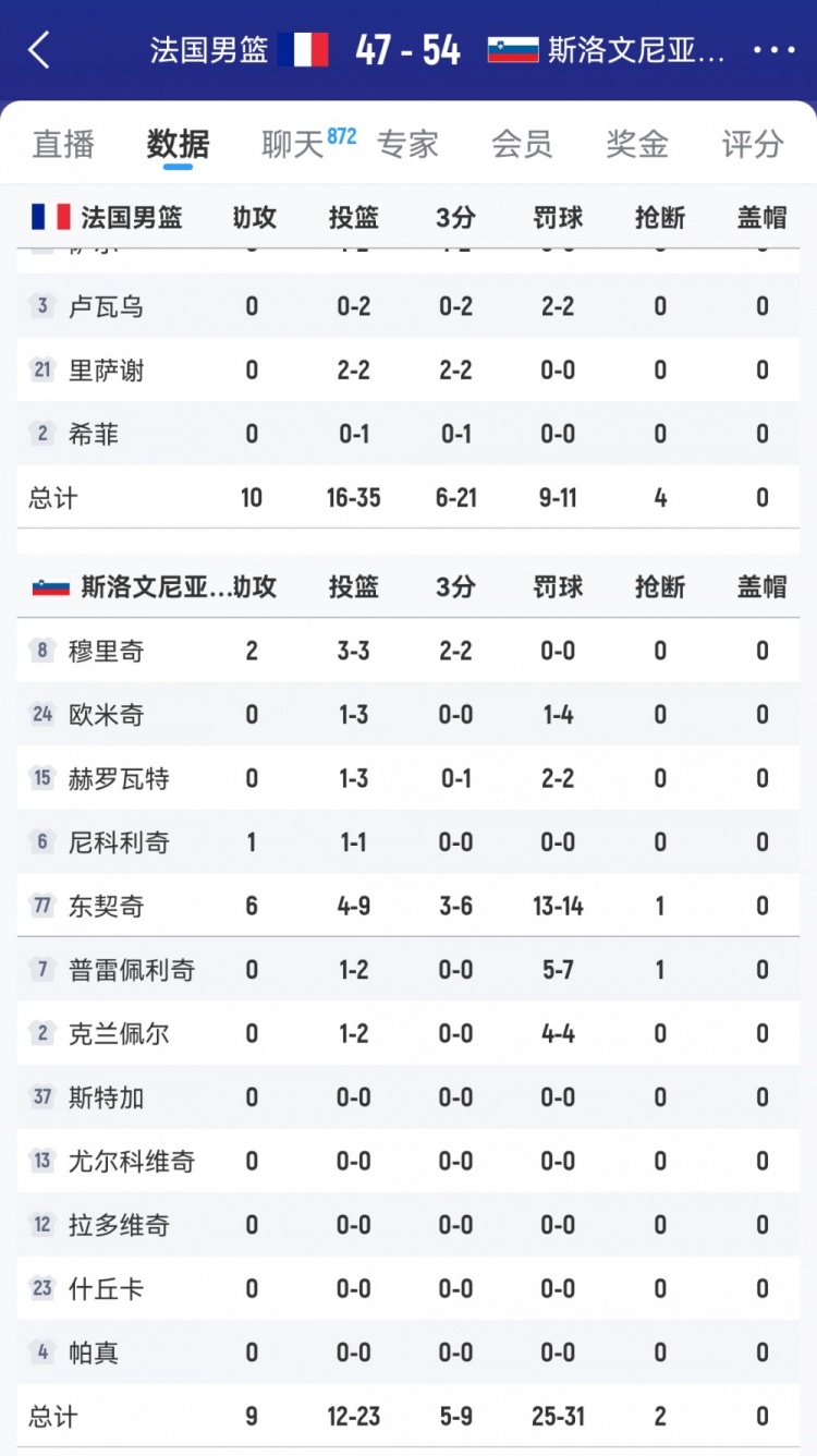 天壤之别!半场法国男篮11罚9中 斯洛文尼亚为惊人的31罚2...