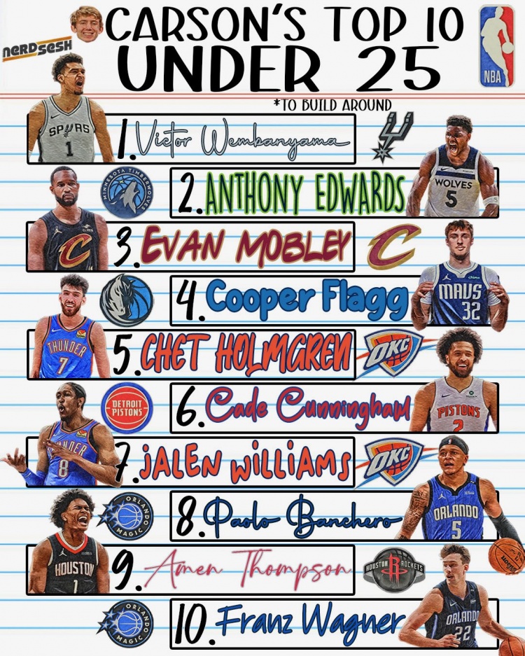 两位美记评25岁以下top10:文班&华子均位列前二 弗拉格在列