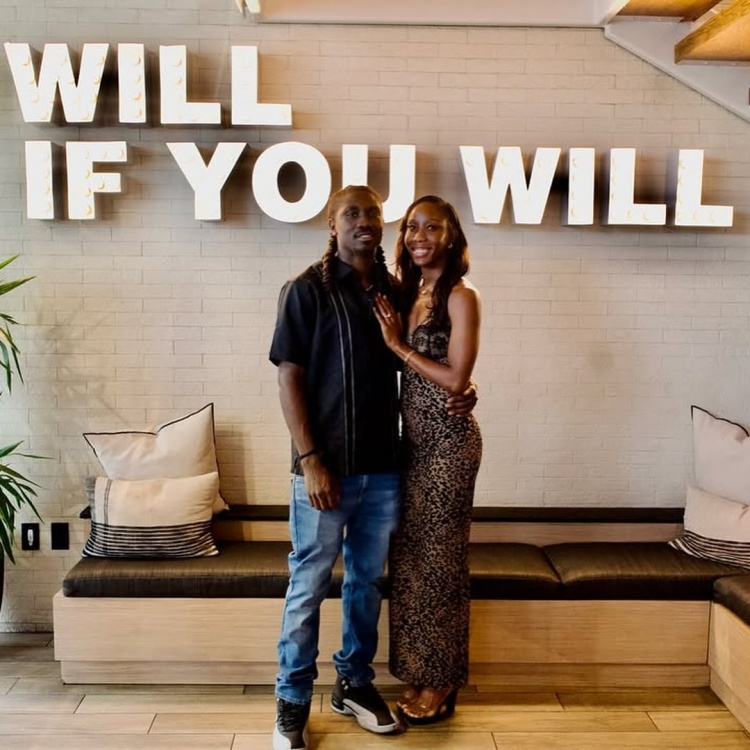 9月3日讯 老鹰球员基顿-华莱士和女友塔沙里安-罗宾逊求婚成功。从现场照片可以看到双方一众亲友都到场祝福,基顿的弟弟卡森-华莱士也在其中。
