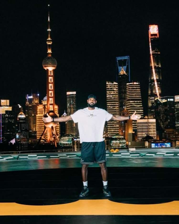 詹姆斯今日更新Instagram,晒出他昨晚在下榻酒店顶楼所拍摄的一组中国行宣传照,以及从顶楼拍摄到的外滩绝美夜景。