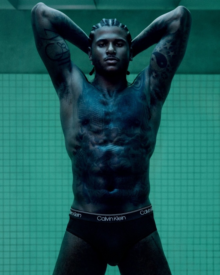这组照片中,杰伦-格林只穿着CK的内裤拍摄广告,好身材一览无余。