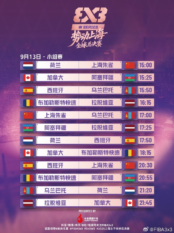 FIBA3x3女子系列赛年度总决赛将于9月13日至14日在上...
