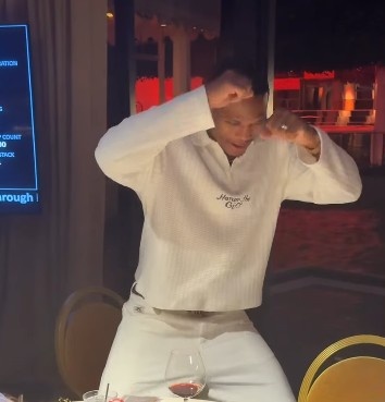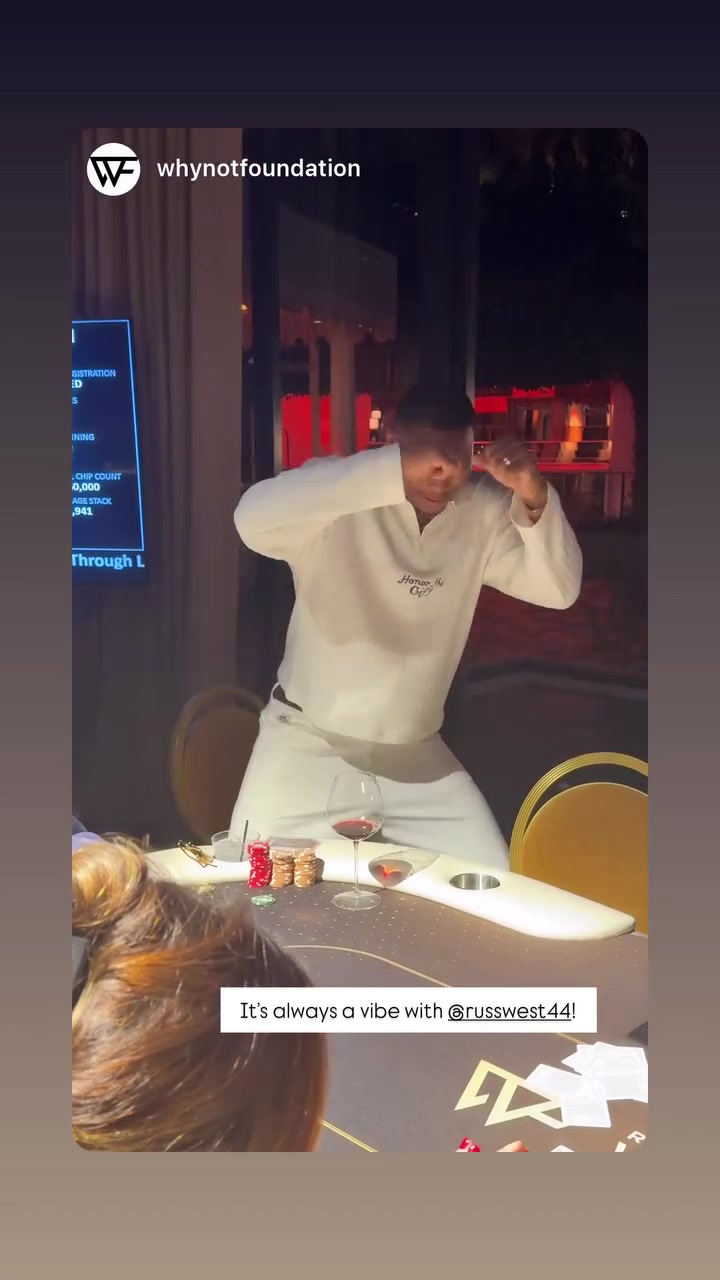 这律动感!威少在扑克之夜品着红酒 听着音乐秀一发舞技!