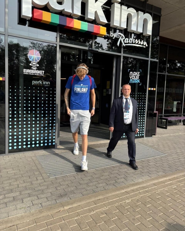 9月15日讯 欧媒Basketnews晒出的芬兰球员穆里宁离开酒店的照片,照片中穆里宁背着一个卡通小书包,和他在比赛中炸裂的表现有非常强烈的反差感。
