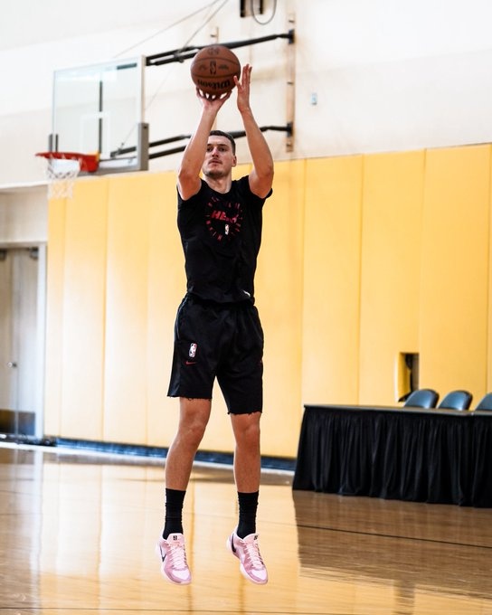9月18日讯 今天,热火官方晒出了约维奇的训练照。