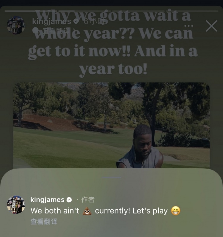 凯文-哈特挑战詹姆斯一年后高尔夫对决 詹姆斯:为何要等一年?