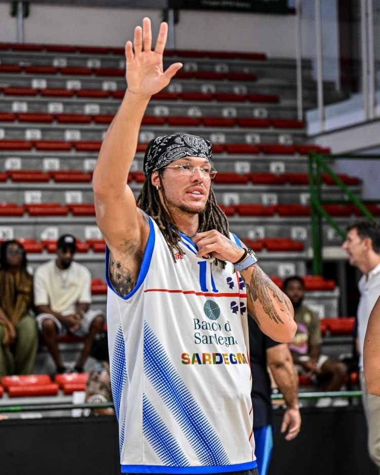 9月19日讯 掘金球员阿隆-戈登在意大利萨萨里出席活动时,穿着其已故哥哥德鲁-戈登的球衣。