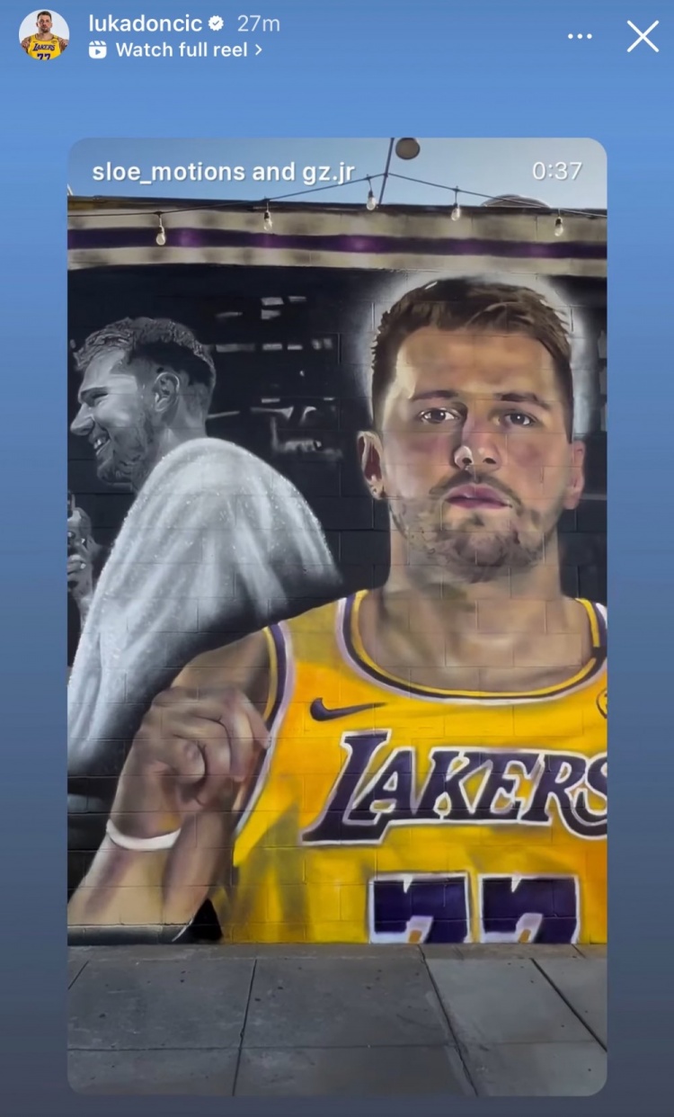 壁画作者sloe_motions表示:“感谢并欢迎东契奇来到洛杉矶,并为我们的社区和民众做出回馈。有幸能迎来卢卡,希望这能让他在这里更有‘家的感觉’。”