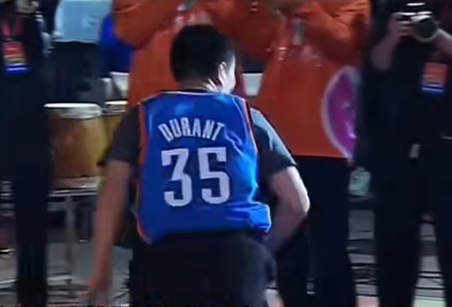 严父型球迷!徐静雨场上怒换杜兰特雷霆球衣 追梦一旁鼓掌大笑_篮球新闻_蜘蛛直播