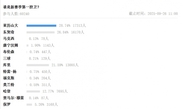 『吧友评选』🌟NBA新赛季第一控卫:谢伊-亚历山大!