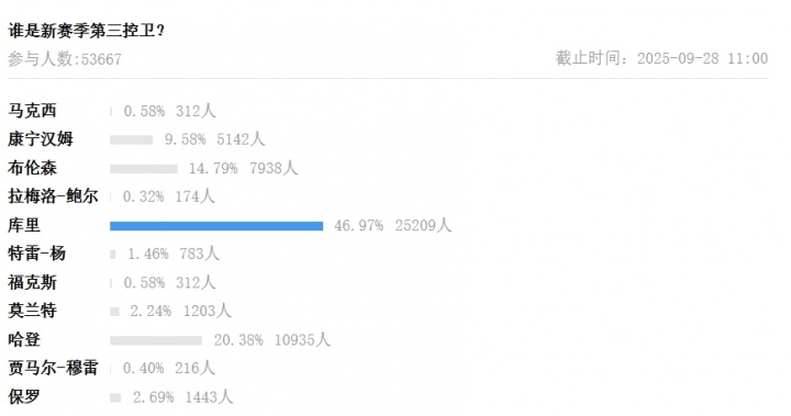 『吧友评选』🌟NBA新赛季第三控卫:斯蒂芬-库里!