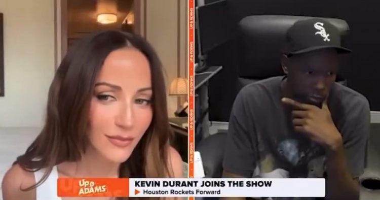 10月1日讯 杜兰特在连线时,和美女记者凯-亚当斯聊到,邀请对方来看火箭比赛,赛后还可以顺便一起吃点小烧烤。