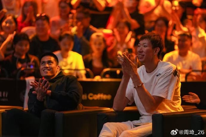 周琦随后更新个人微博,晒出现场看球的照片,配文写道:“第一次现场看🏓男双3-0轻松加愉快!”