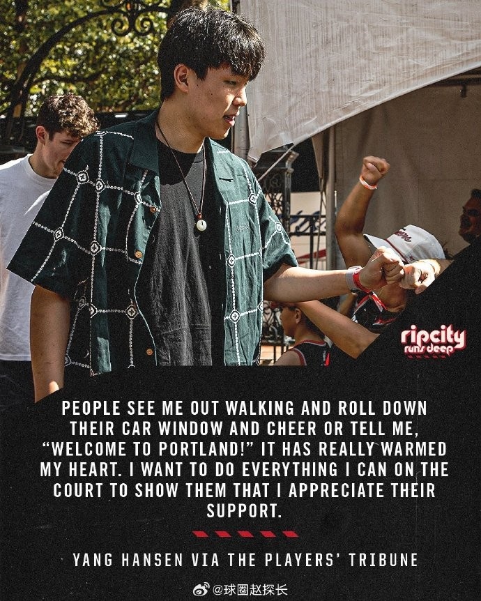 “波特兰的居民和球迷也都非常热情欢迎我,很多人在街上和我打招呼,摇下车窗说‘欢迎来波特兰’,让我觉得很温暖。希望不久的将来,我能在球场上回报大家的爱。”
