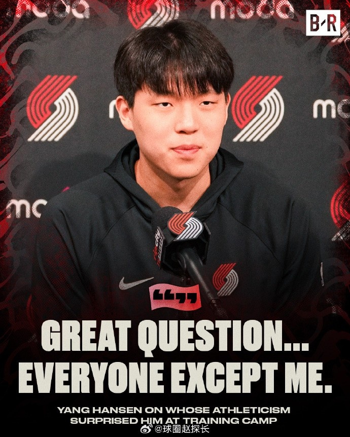 10月4日讯 媒体人球权赵探长转发了美媒制作杨瀚森言论的海报,并写道:杨瀚森讲过的话还蛮受关注,已经不止一条被美媒做成海报了,最新的一张是BR给出的。记者问他对训练营里哪名队友的天赋印象深刻,小杨说“除了我,都能跑能跳”。