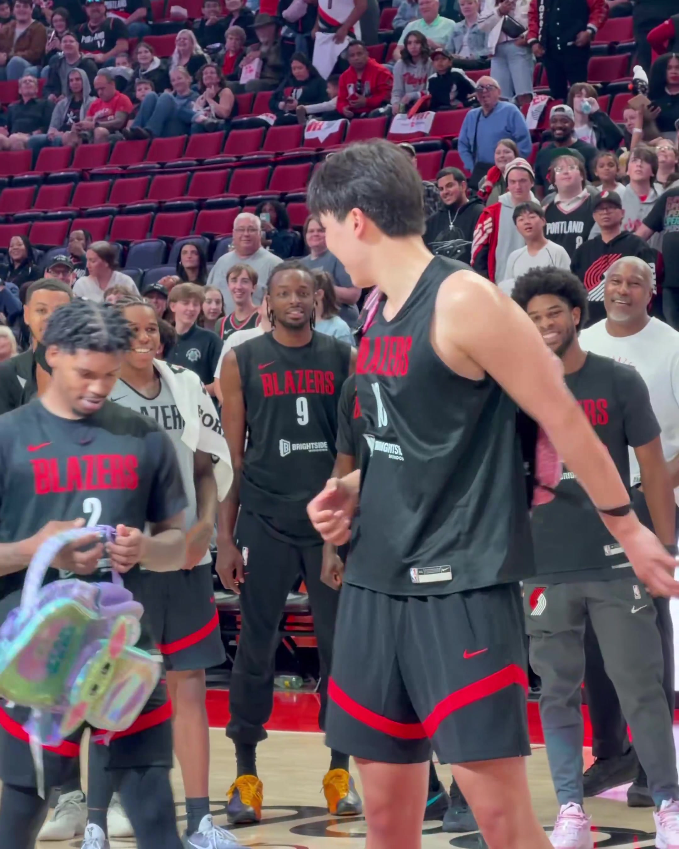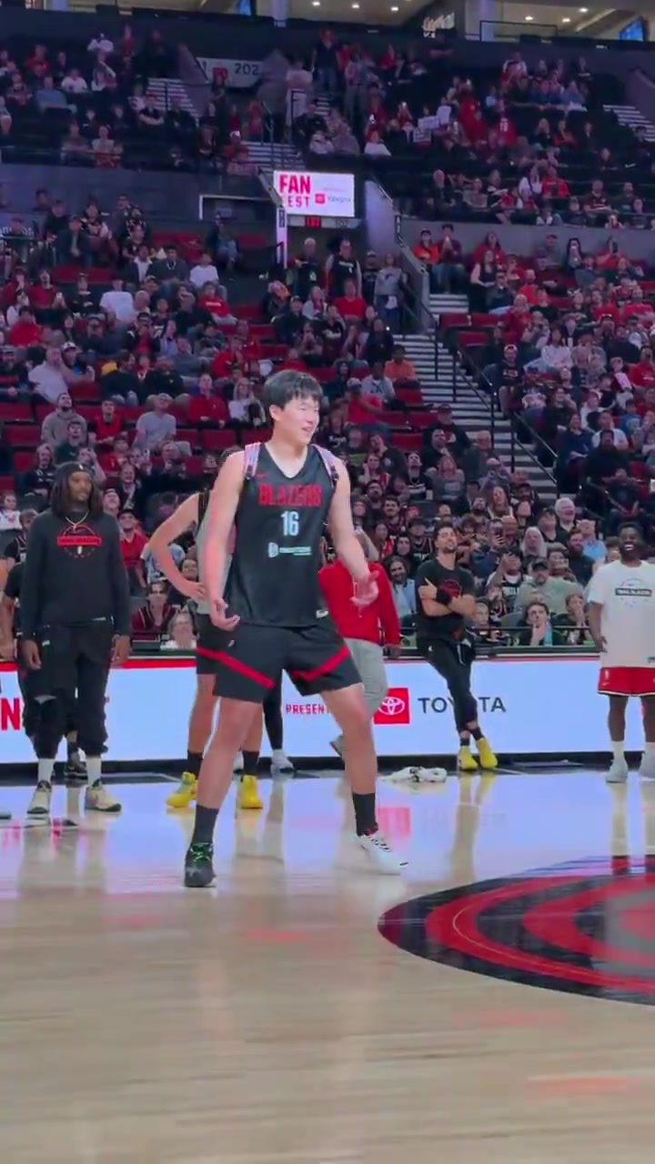 开拓者球迷嘉年华🤣新秀杨瀚森和乐福背着书包学跳舞 队友鼓掌