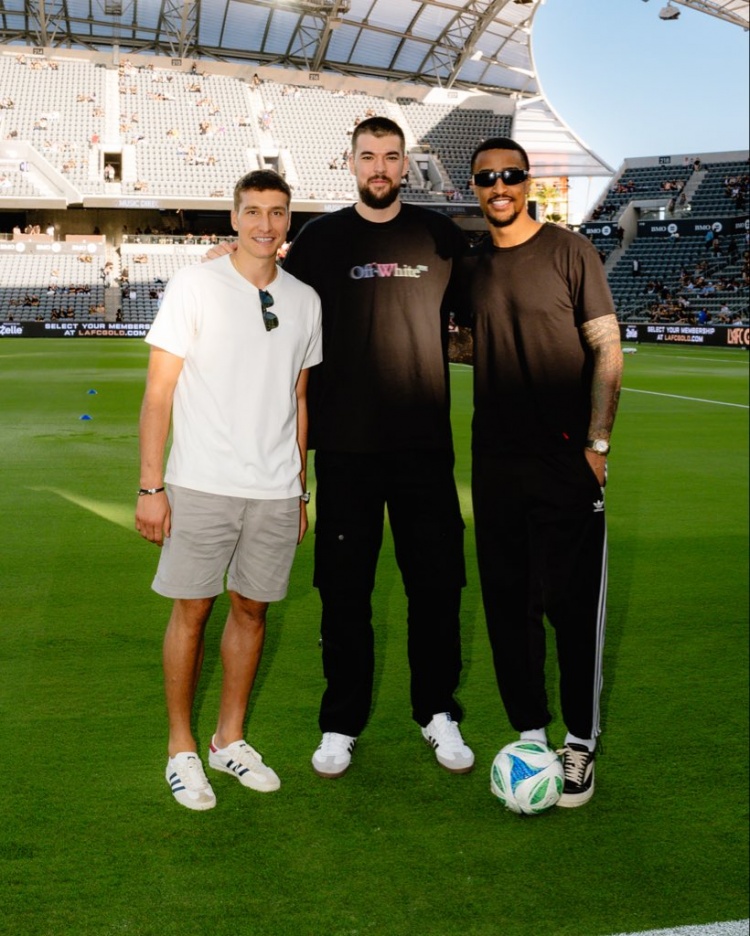 快船官方配文写到:“周日足球之夜,祖巴茨、博格丹-博格达诺维奇、科林斯一起现身观看今晚的洛杉矶FC比赛!”