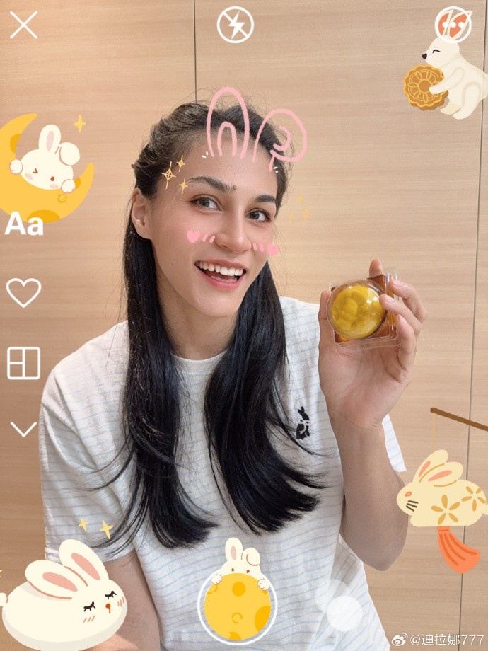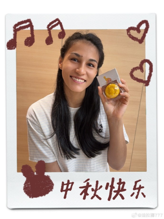 迪拉娜配文写道:“🐇🌙✨🥮🌸 须臾之间,又是一年🥮月亮慢慢变圆,事事慢慢如愿🏮”