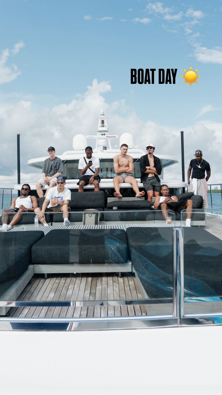 10月10日讯 希罗更新社媒,晒出了与队友们一起游艇出海团建的照片。