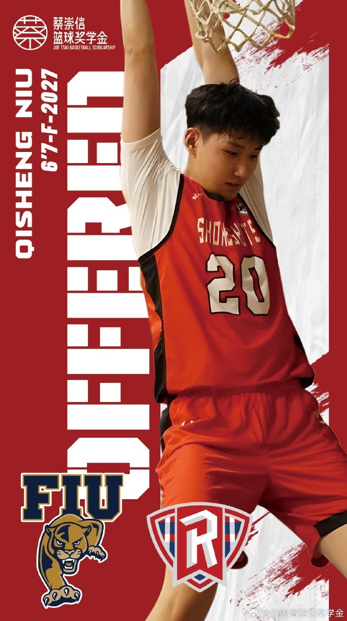 10月10日讯 据蔡崇信篮球奖学金官方报道,牛麒晟收获来自NCAA D1的佛罗里达国际大学的offer!