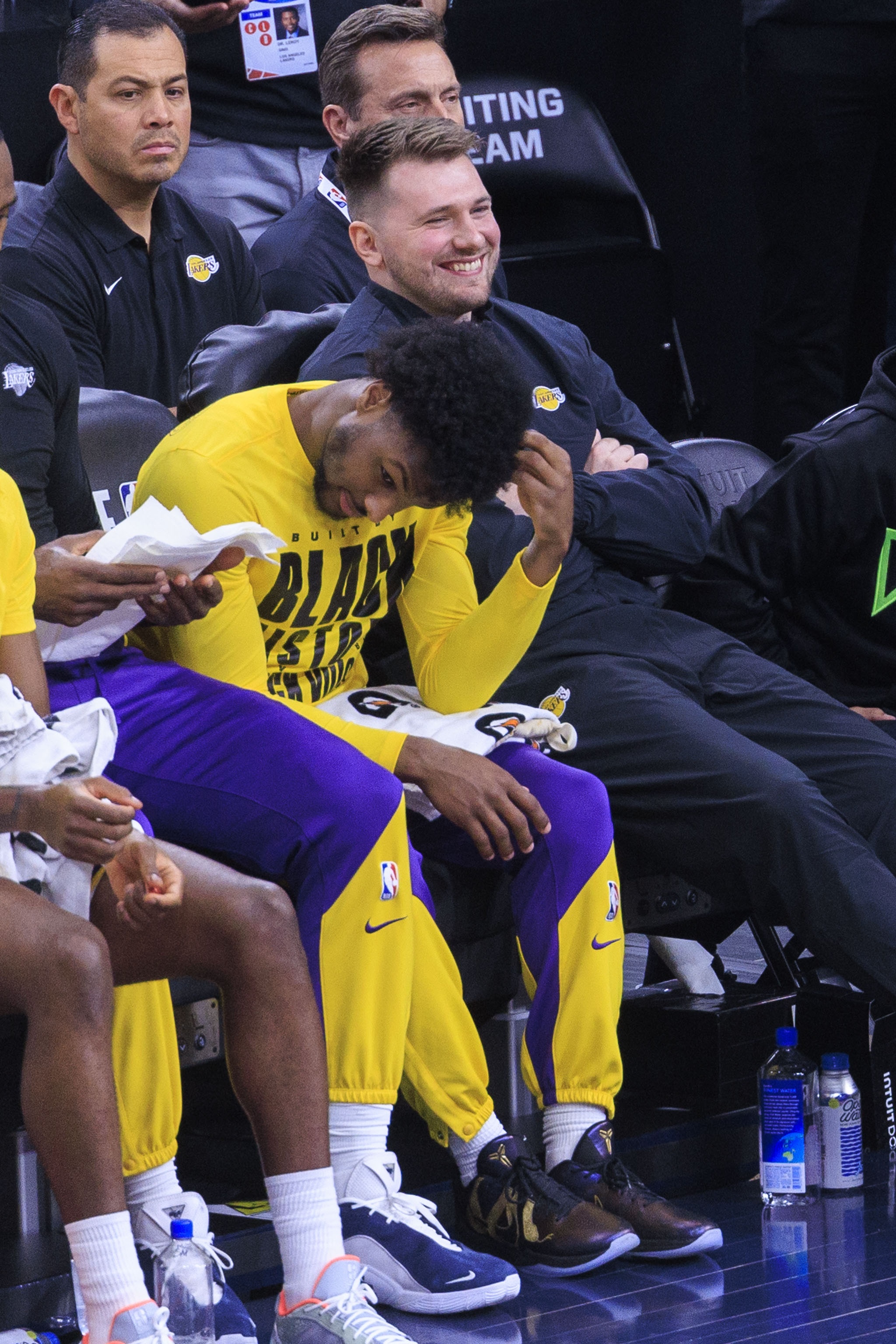 首先,随着詹姆斯的缺阵,湖人在赛季初每晚就空出了30到35分钟的上场时间。他们休赛期引进的后卫马库斯-斯玛特目前正受跟腱炎的困扰,所以赛季开始时他能打多久还是个未知数。为了腾出空间引进他,湖人裁掉了上赛季的轮换后卫乔丹-古德温。此外,马克西-克莱伯也正受股四头肌伤病的困扰,而从健康角度来看,他也不是一个能被完全依赖的球员。换句话说,赛季初期似乎有可供分配的上场时间。这里的讽刺之处在于,勒布朗-詹姆斯的受伤,可能会为他儿子布朗尼的上场打开大门。布朗尼显然比他父亲身材小很多。他们打不同的位置。但湖人的阵容位置相对灵活。毕竟,他们的两位主要持球手是詹姆斯和卢卡-东契奇,两人都是前锋身材。在勒布朗、斯玛特和克莱伯都缺阵的情况下,有八名球员几乎肯定会出场:东契奇、奥斯汀-里夫斯、八村塁、贾里德-范德比尔特、加布-文森特、德安德烈-艾顿、杰克-拉拉维亚和贾克森-海斯。