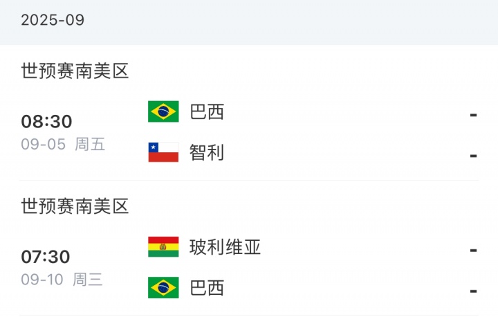 巴西赛程: