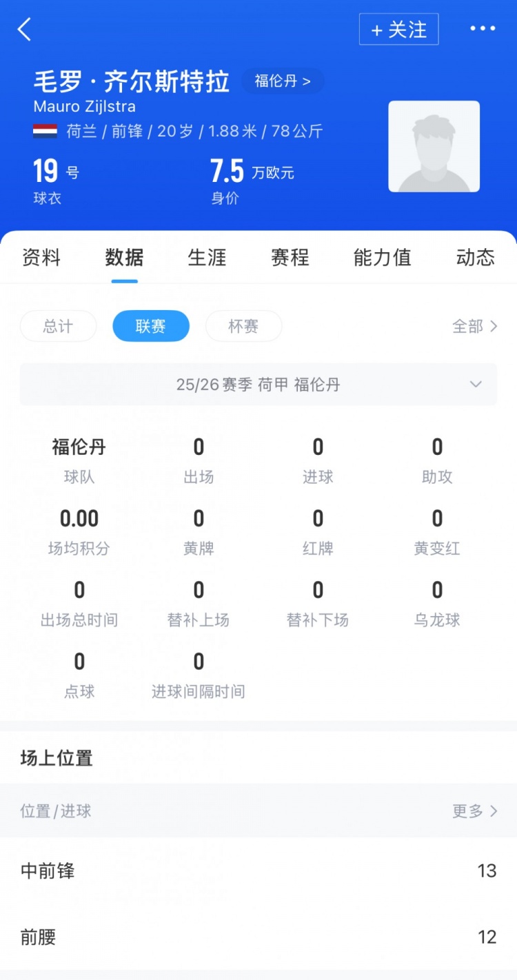毛罗-齐尔斯特拉,出道于奈梅亨青训,今年1月转会到福伦丹效力,上赛季在青训队和一线队共出战28场,打进17球助攻7次,随队获得上赛季荷乙冠军,目前德转身价.75万欧。
