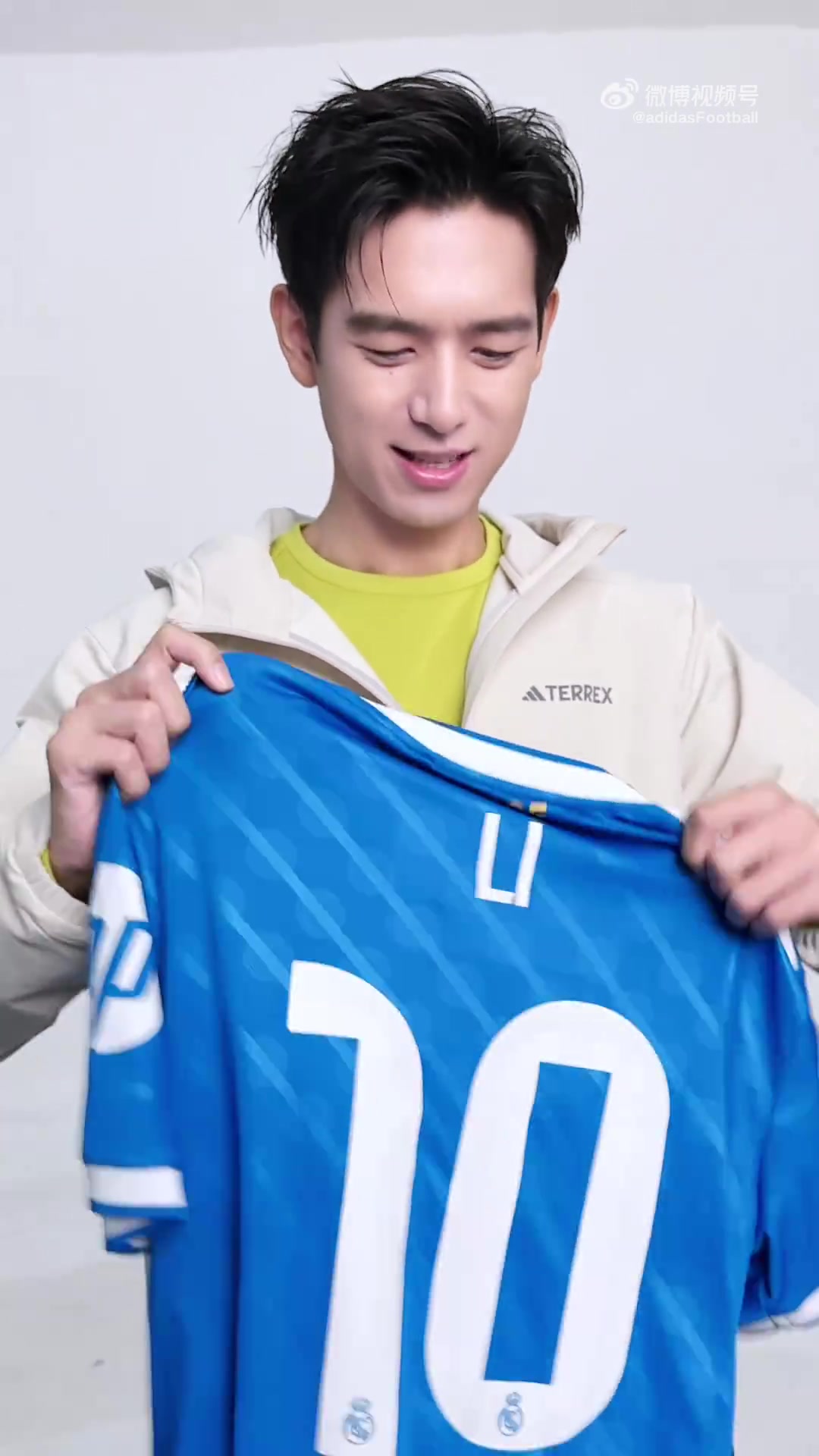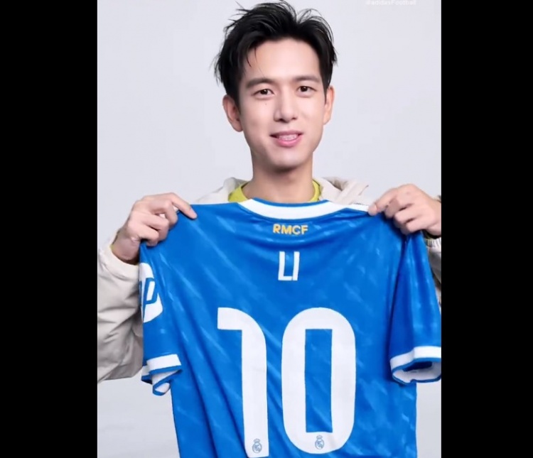 阿迪达斯足球官博晒出了李现收到球衣的视频并配文调侃写道:“🤔听说皇家马德里又来了位新10号?”
