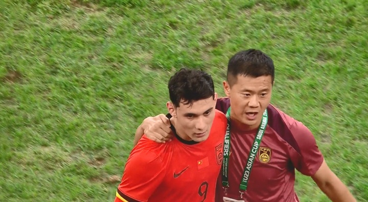 踢的有点闷!拜合拉木下场时连连摇头,黄博文上前与其交流鼓劲