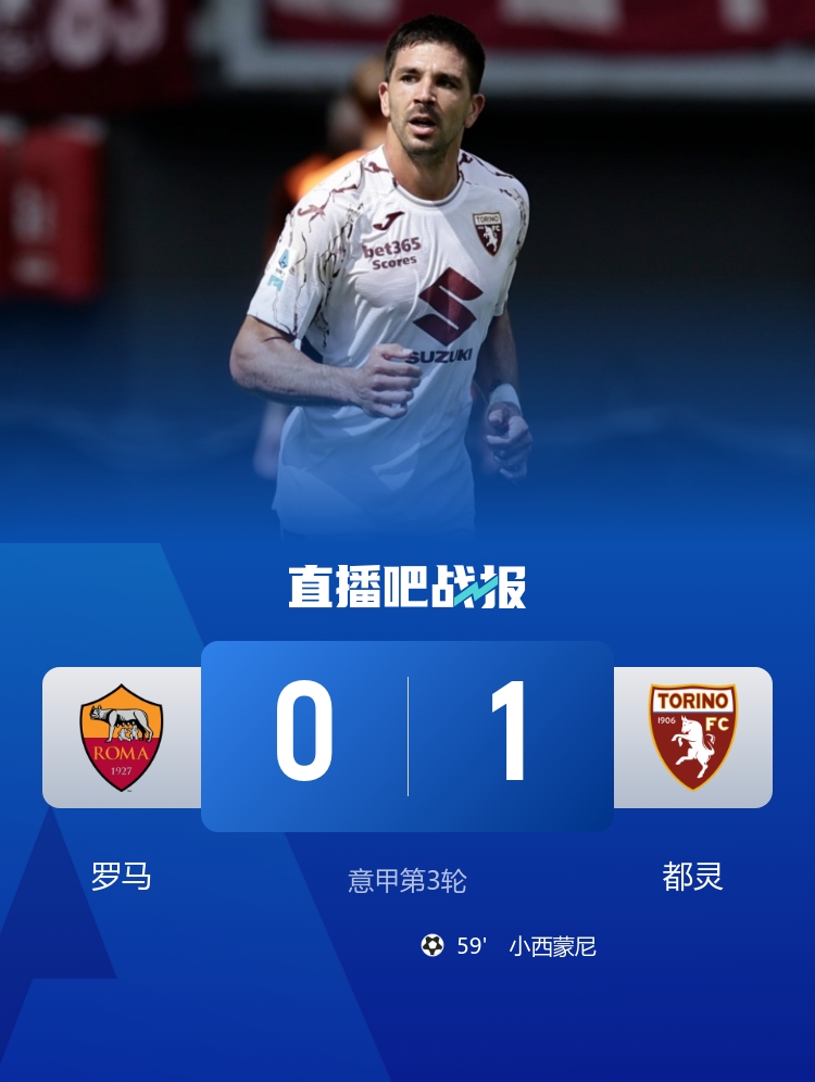 9月14日讯 北京时间9月14日晚18时30分,2025-26赛季意甲第3轮在罗马奥林匹克球场展开角逐,罗马主场迎战都灵。上半场双方比赛场面沉闷,下半场小西蒙尼世界波打破僵局+都灵生涯处子球。最终罗马主场0-1不敌都灵,罗马全场22脚射门未果+联赛开局两连胜终结&零失球金身告破,都灵取得首胜。