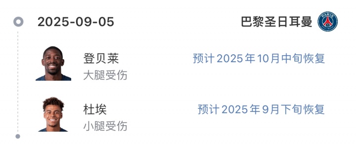 卫冕冠军遭遇伤病潮!巴黎开赛4轮伤5名大将,周中欧冠对亚特兰大