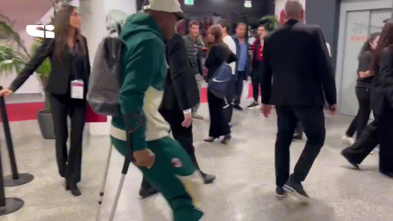 9月15日讯 在米兰1-0击败博洛尼亚后,伤退的迈尼昂被拍到拄拐离开球场。