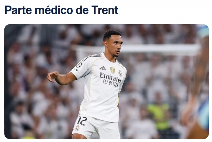 在由皇家马德里医疗服务中心对我们球员特伦特·亚历山大-阿诺德今日进行的检查后,其左腿股二头肌被诊断为肌肉损伤。有待进一步观察。