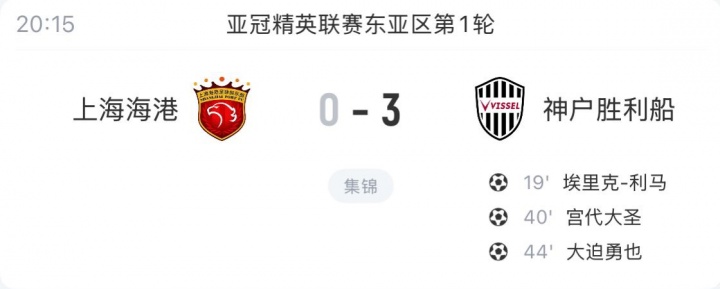 09月17日讯 亚冠精英联赛东亚区第1轮,上海海港主场0-3不敌神户胜利船,无缘复仇。