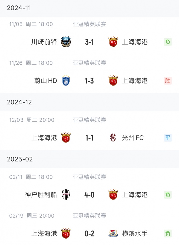 目前,海港面对J联赛球队已6连败,共丢17球仅打进2球。