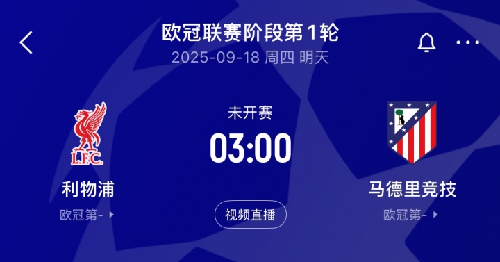 2025/26赛季欧冠首轮今夜继续!周四凌晨12支球队出战,不乏拜仁vs切尔西、利物浦vs马竞的强强对话。