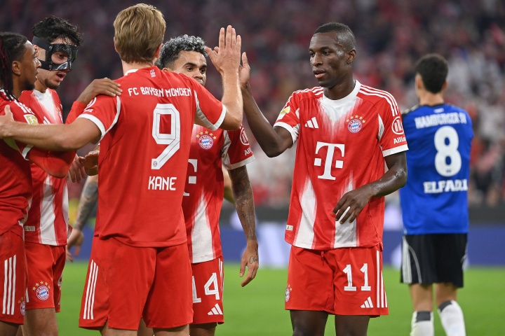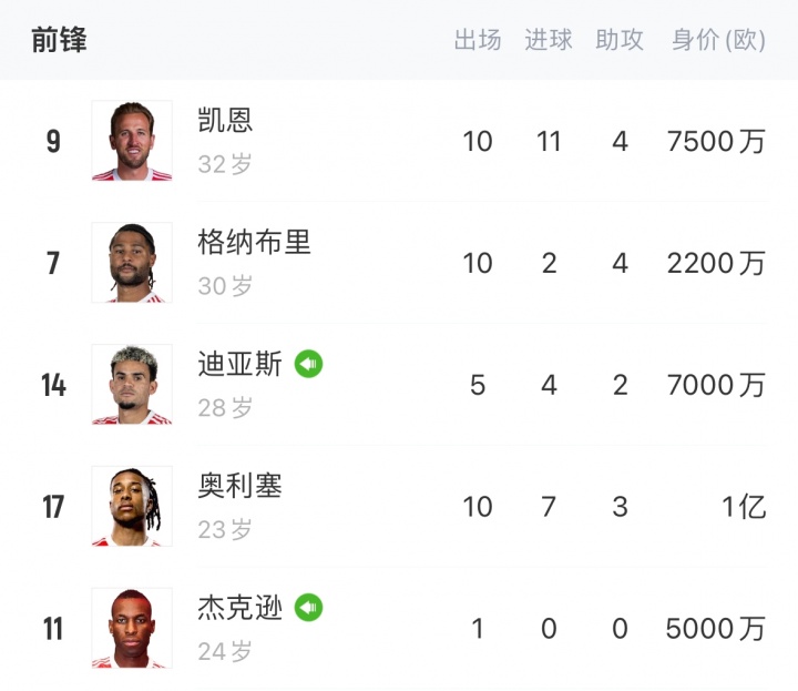 赛季前5场比赛,拜仁狂入19球,其中锋线4人包办了其中的18球: