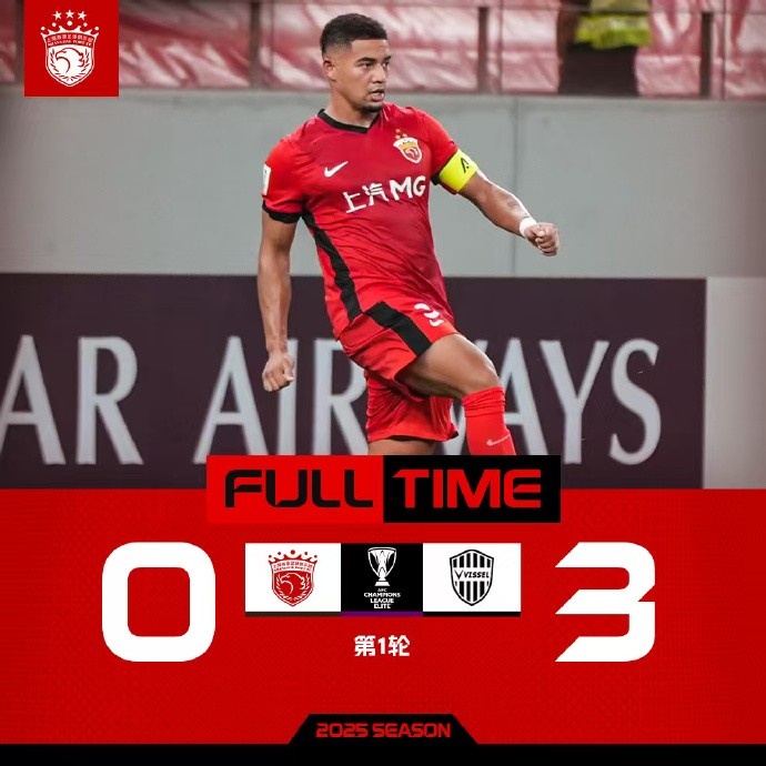 2025/2026亚冠精英联赛第1轮,上海海港0-3神户胜利船。第19分钟,对方外援埃里克用一脚世界波打破僵局。随后,海港队加强攻势,但古斯塔沃的单刀和李圣龙的头球都未能将比分改写。第40分钟和第44分钟,对手通过两次边中结合由宫代大圣和大迫勇也连进两球。半场结束,海港队0-3落后。易边再战,海港队换上加布里埃尔、李帅、亚历斯祖等欲改变战局,球队在一段时间夺回了进攻主动权,但未能取得进球。最终,海港队0-3落败。感谢来到现场的海港家人们对球队的加油与支持,也感谢电视机前球迷的关注和鼓励。下一场比赛,球队将于9月21日(周日)做客北京工体挑战北京国安队。