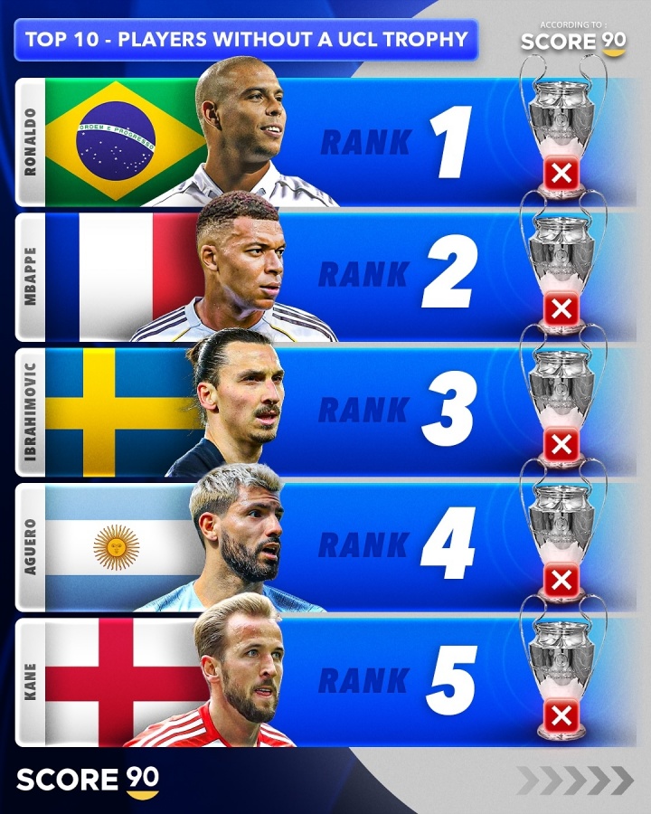 无欧冠球员TOP10:大罗居首 姆巴佩、伊布、阿圭罗、凯恩列2至5位_足球新闻_蜘蛛直播