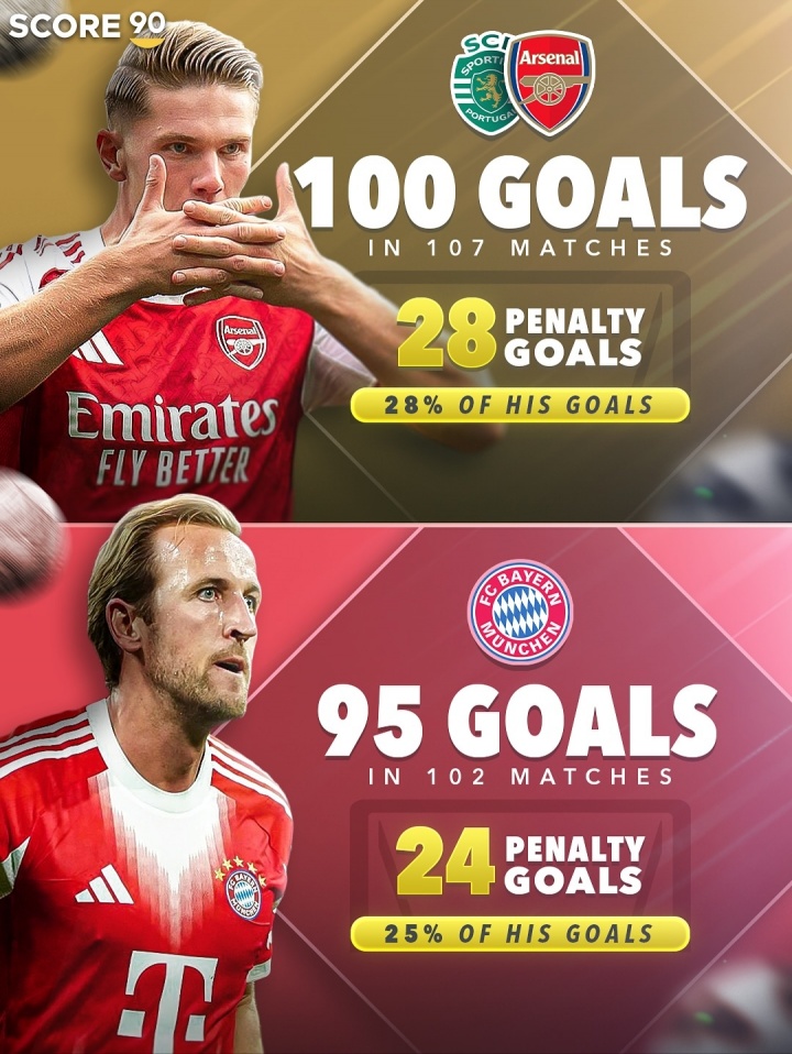 约克雷斯:葡体+阿森纳107场100球,28点球,占比28%